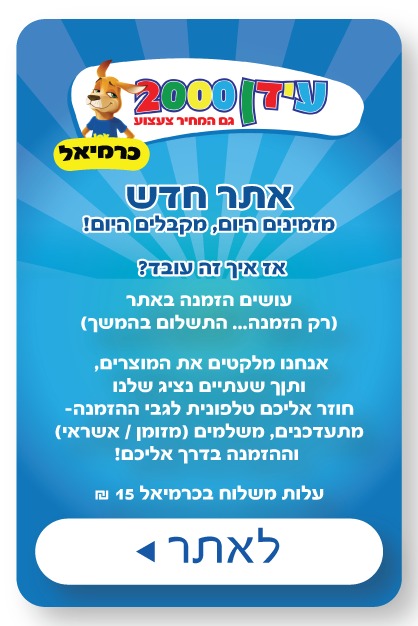 הזמנות שיבוצעו עד השעה 12:00 יסופקו באותו היום (כרמיאל והסביבה). במקרה של משלוח מרוחק זמני האספקה הם עד 4 ימי עסקים (לא כולל שישי שבת) -